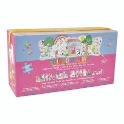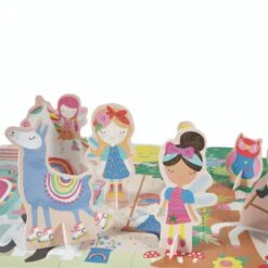 This shaped, 60 piece Rainbow Fairy Jigsaw with Pop Out Pieces is sure to keep little hands busy. Great for hours of concentration and imaginative play in the fun and whimsical Rainbow Fairy fantasy land. Once the big, beautiful floor puzzle is complete you’re ready to… Pop Out your 16 pop up characters and slide them into their stands. Fairies, owls, a hula dancing bear and even a roller skating llama are ready to dance around the puzzle and get up to all sorts of adventures! Once playtime’s finished, the puzzle and pop out pieces can be neatly packed away inside its decorative box.