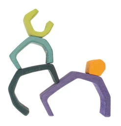 This stacking tower looks like a boat on water: the children can sort and stack forms and colours and build with the blocks. While stacking, the eye-hand coordination is stimulated and fine motor skills are trained. Eleven building blocks for stacking. Materials: lime wood, non-toxic water based color stain. Size: height 27cm. WARNING: Potential hazardous accessible points. Always put on safety cap while not assembling or disassembling wooden coloured discs.