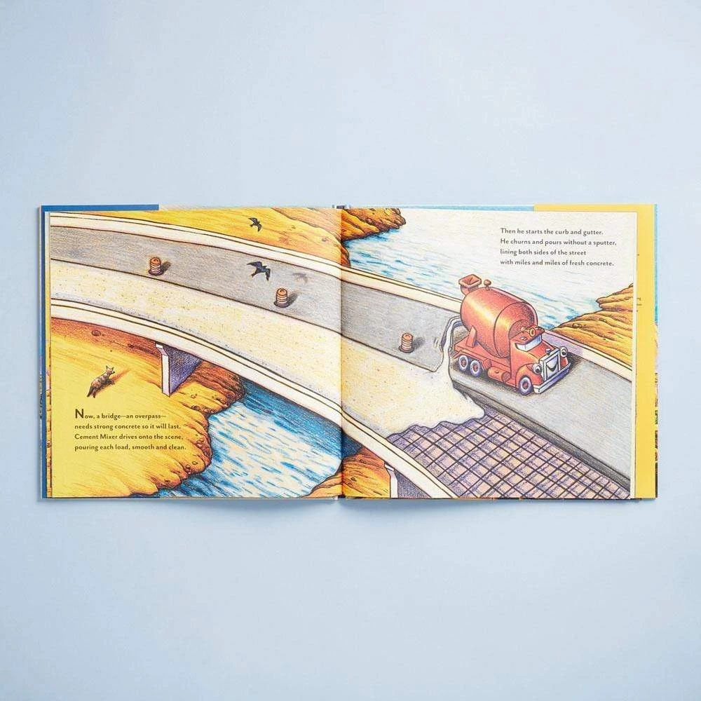 HOW TO BUILD A ROAD: The process of putting a new road together is FASCINATING and involves a whole bunch of special vehicles, who help the original crew level, grade, flatten, pave, stripe, and open up a new road so that everyone can get home safe for bedtime!