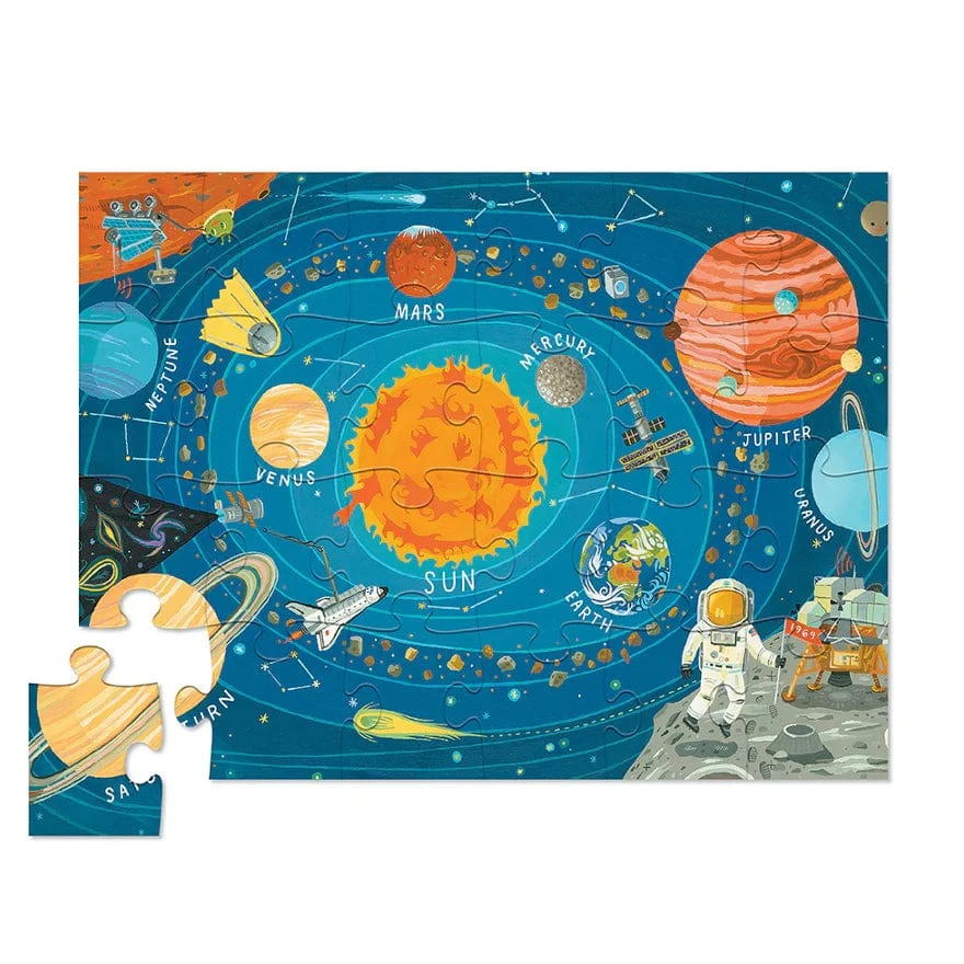 Blast Off!!! Blast off into the far reaches of the galaxy with our 24 piece Solar System floor puzzle! With its captivating illustrations and bold colors, this puzzle is the ultimate journey through the cosmos for budding space explorers.