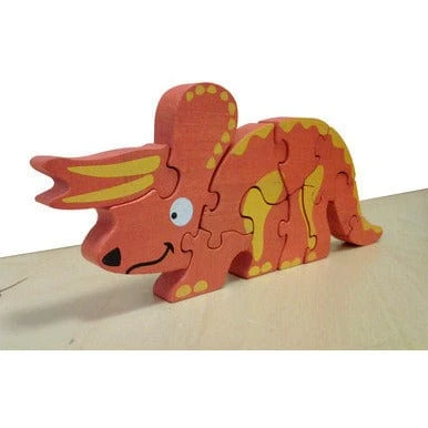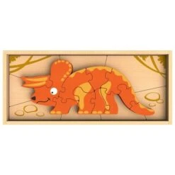 Kids really dig this dinosaur! Our chunky, double-sided Triceratops puzzle has the dino’s bone structure on one side and friendly features on the other side. More puzzle pieces set the scene, teach the dinosaur’s name and hold the dino in place within the included storage/display box. Made from eco-friendly rubber wood with child-safe stains, this 19-piece puzzle develops fine motor and problem-solving skills while pleasing little dinosaur devotees. Recommended for ages 5+.