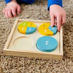 Make math fun with this wooden fraction puzzle – a great introduction to fractions for children! Large, chunky pieces are easy to handle and fun for children to learn fractions.