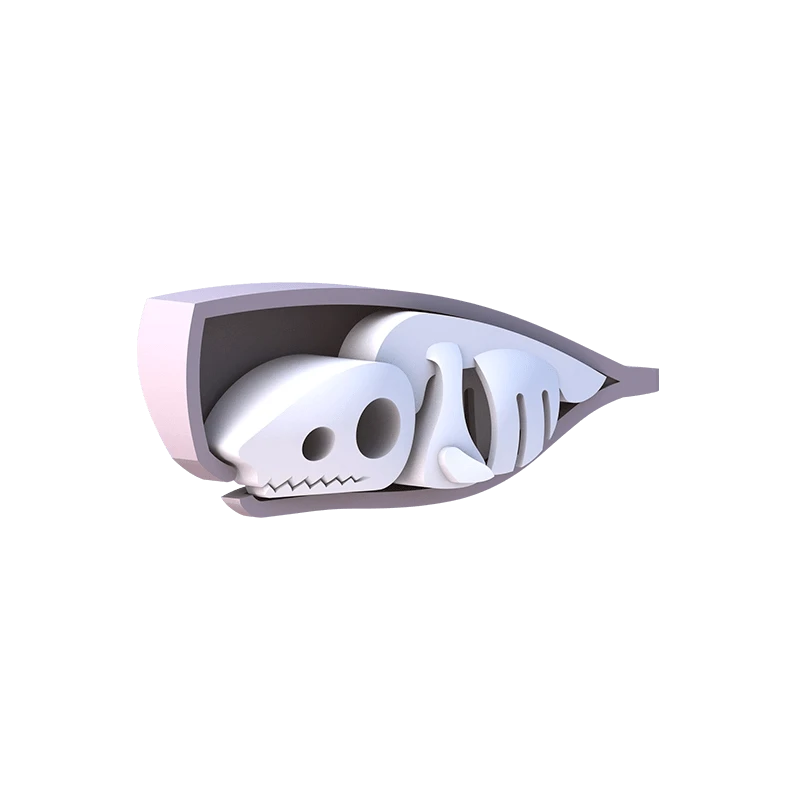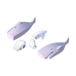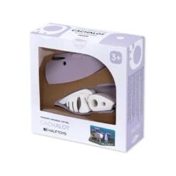 The cachalot or sperm whale is the largest toothed whale and predator. It can be easily recognized amongst other whales due to its square head and narrow lower jaw. These whales are deep divers and primarily feed on cephalopods like the giant squid! As a halftoy, you can open its magnetic shell to find the skeleton, a 3-piece bone puzzle. Each animal figure comes with a diorama that can be linked to other dioramas in the half ocean collection. Collect them all and build a scenic ocean world!