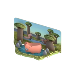 The hippo is a large semi-aquatic mammal that is herbivorous and spends around 18 hours a day in water to keep cool. Did you know hippos can run up to 30 miles per hour? As a halftoy, you can open its magnetic shell to find the skeleton, a 4-piece bone puzzle. Each animal figure comes with a diorama that can be linked to other dioramas in the half animal collection. Collect them all and build a scenic animal world!