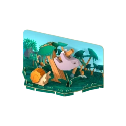 Sloths live in the treetops of central and south american forests. These slow-moving mammals spend most of the day sleeping and when awake they spend their time eating leaves, twigs, and buds. As a halftoy, you can open its magnetic shell to find the skeleton, a 3-piece bone puzzle. Each animal figure comes with a diorama that can be linked to other dioramas in the half animal collection. Collect them all and build a scenic animal world!