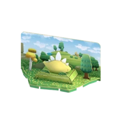 The stegosaurus lived about 145 million years ago during the jurassic era, weighing about 14,000 pounds. It is said they used their heavy tails as a defense mechanism from lurking predators. As a halftoy, you can open its magnetic shell to find the skeleton, a 3-piece bone puzzle. Each animal figure comes with a diorama that can be linked to other dioramas in the half dino collection. Collect them all and build a scenic dino world!