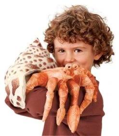 Feeling crabby? This brilliantly colored Crab puppet can cheer you up in a pinch! With his bright orange body and soft patterned shell, he’ll sidle blithely into your heart. Slip your hand inside his underside to wiggle legs and pincers.