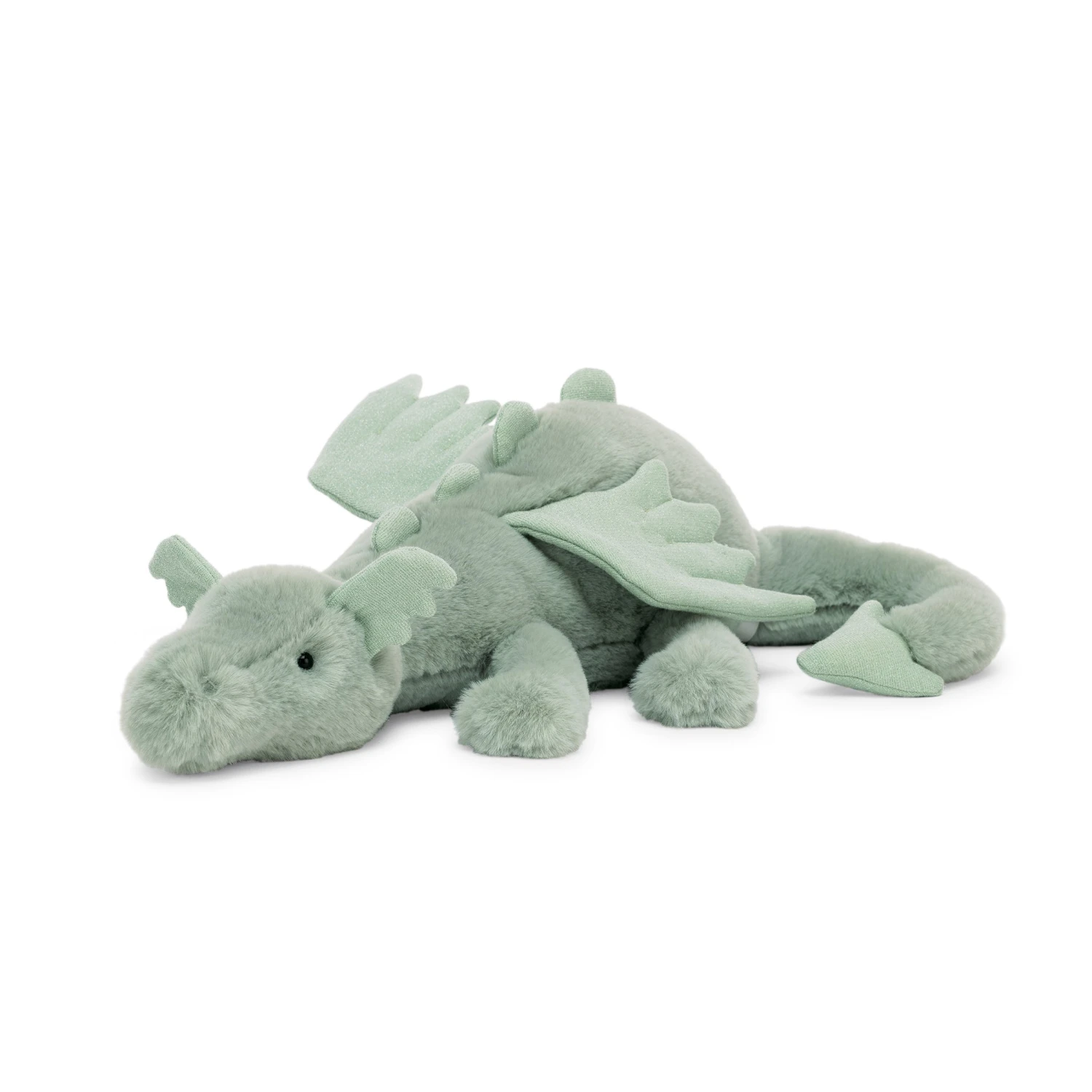 Doze and dream with sweet Sage Dragon. A curious cutie with waggle wings and minty-marvellous sparkle fur, this little legend has perky ears, squashy spines and a long, loopy tail. Dragons love stories, especially at bedtime, so spin some magical yarns!