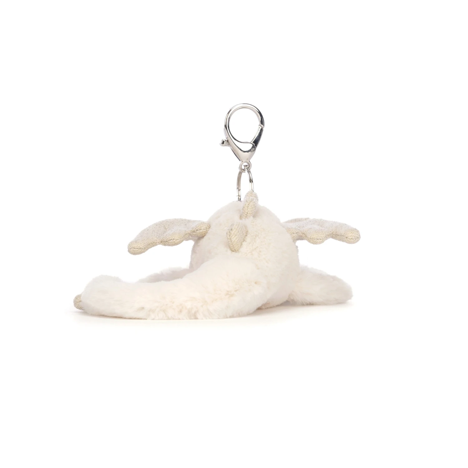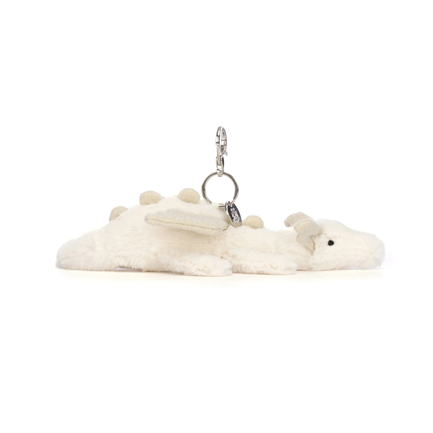 Whatever the weather, the Snow Dragon Bag Charm will be there for you. This loveable dragon is snowball-soft, with rich vanilla fur and silver sparkles on the ears, spines and wings. With a cute curved tail, silver claw clip, Jellycat disc and tiny paws, this cosy pal wards off the chills!