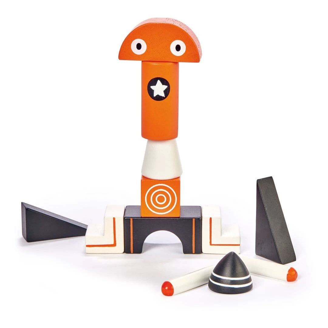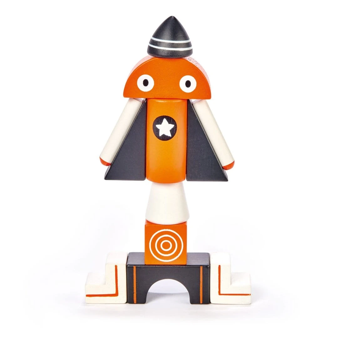 A set of 12 space themed magnetic blocks, made from solid rubber wood and concealed multi directional magnets ensuring there is always positive attraction and no repelling. Included in this set is a stylish and colorful drawstring bag to keep all the blocks safe.